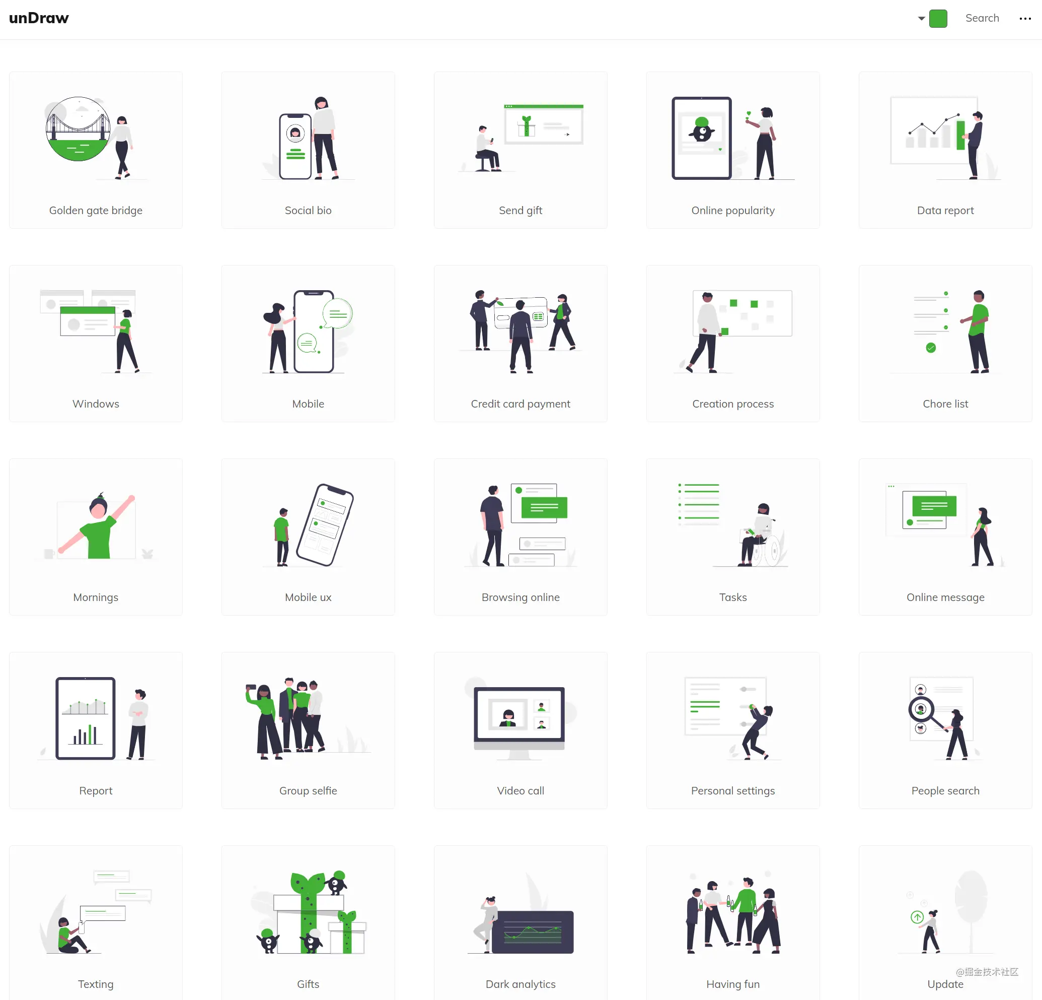 SVG 插图资源是海量的,本瓜下拉了十几、二十次都拉不完(当然,搜索功能也是有的);并且,你还可以自定义插图的配色,简直不要太 NICE~