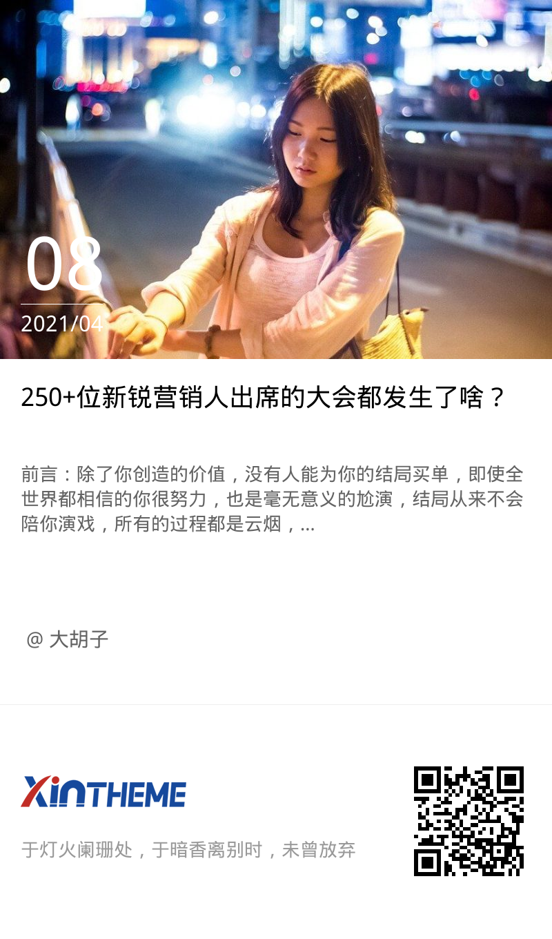 前言:除了你创造的价值,没有人能为你的结局买单,即使全世界都相信的你很努力,也是毫无意义的尬演,结局从来不会陪你演戏,所有的过程都是云烟,唯有结果方能证你始终。真正的努力,不需要任何的眼泪与苦衷,只相信结局成果。